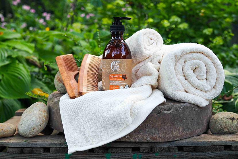 Máte po koupání vysušené a zacuchané vlasy? Dopřejte jim jemnou péči přírodního šamponu a poté je rozčesejte bezoplachovým kondicionérem, který vrátí lesk a hebkost.