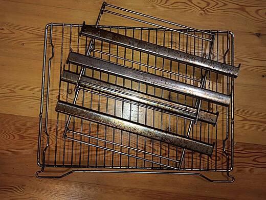 Rošty a podpěry roštů bývají také samý cákanec a připálenina. Nejlepší je je z trouby vyndat a čistit zvlášť.