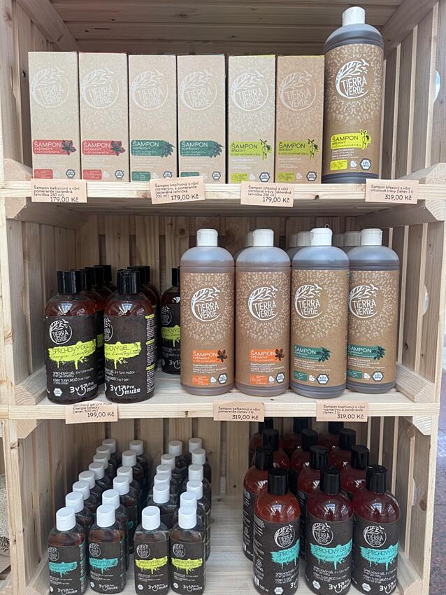 V tomo stánku najdete velmi pestrý výběr produktů ze sortimentu TIERRA VERDE – rozhodně tu jsou všechny oblíbené přípravky, na úklid, nebo na praní, na mytí nádobí… Já tu objevila vše, co mám ráda – třeba Čistič koupelny, Pomerančový odmašťovač, Gel na nádobí, Desinfekční sprej…